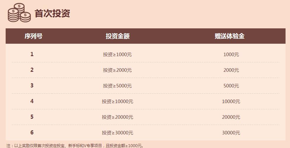 活动方案:首次投资赠送体验金,投的越多送的越多。