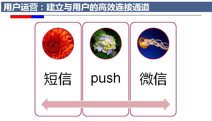 微信的原理跟短信类似,但是微信和push几乎没有成本。短信每发送一条都有成本。因此现在很多公司都在把用户导入微信,建立更多的用户链接场景,同时还能节省用户触达成本。(别问我为什么要把用户倒给微信,所有用户都是微信用户的子集,微信还缺你这点用户?)