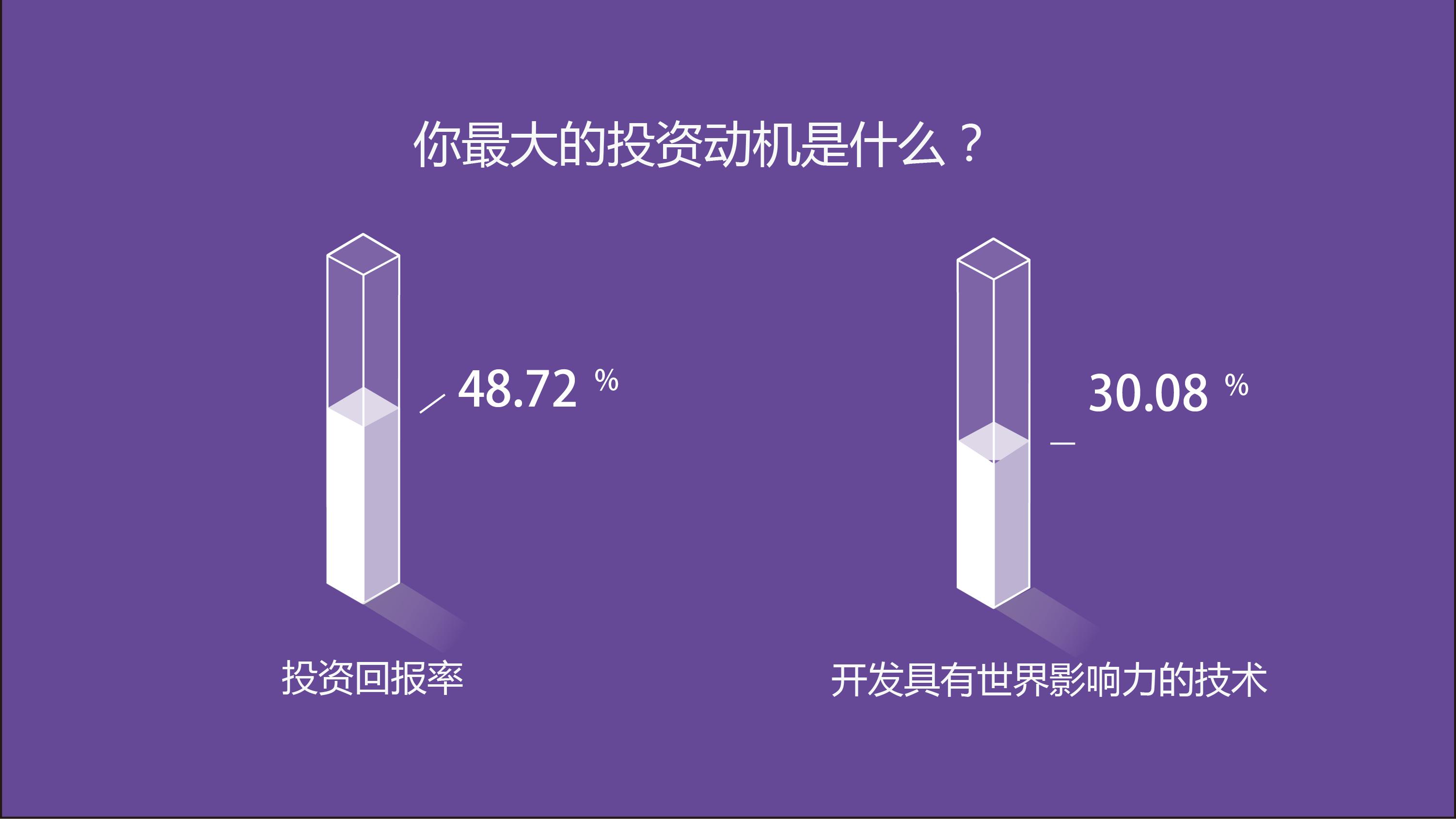 调查结果显示,尽管约一半的主动的天使投资人(48.72%)将投资回报视为投资初创公司的最大动机,但近 1/3 的投资者(31.08%)仍认为解决世界性的技术难题是他们主要的投资动机。