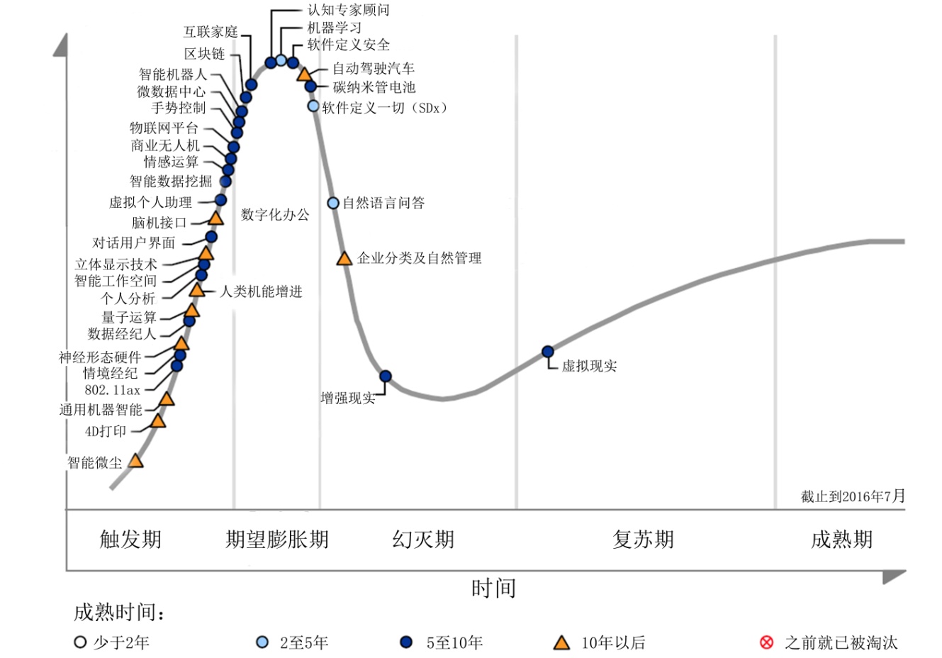 图1 2016新兴技术曲线(来源:Gartner 2016年7月)