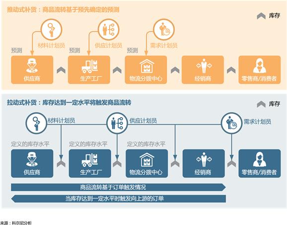 拉动模式的最终拉动力来自于终端零售市场。中间经销商订单不能100%地反映零售市场的需求,而且经销商有很多动机歪曲终端市场的需求表现。所以,终端市场销售数据的可见性非常关键。此外,在拉动模式中,库存战略发挥着重要的作用。零库存(JIT)生产在消费品行业中并不常见。恰当的产品、存放在恰当的库存地点、恰当的库存水平以及恰当的补货机制有助于优化供应链上游的经济性,并应对市场需求的波动。