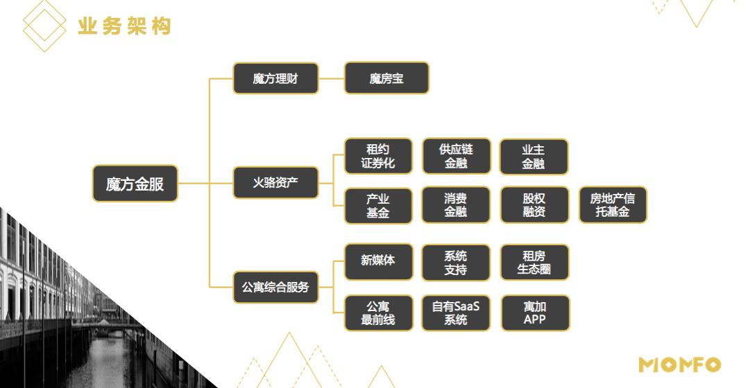 “这是一个重运营的产品,魔方金服需要为运营商、投资人和租客提供全套的运营服务。”凌骏向36氪介绍。目前,魔方金服的产品主要包括火骆资产、魔方理财和公寓综合服务三条产品线。其中火骆资产为房产运营商服务提供全套的金融服务,魔方理财是个人投资者提供的理财产品。而公寓综合服务,则为房产的租客,提供后续的社区、内容等服务。