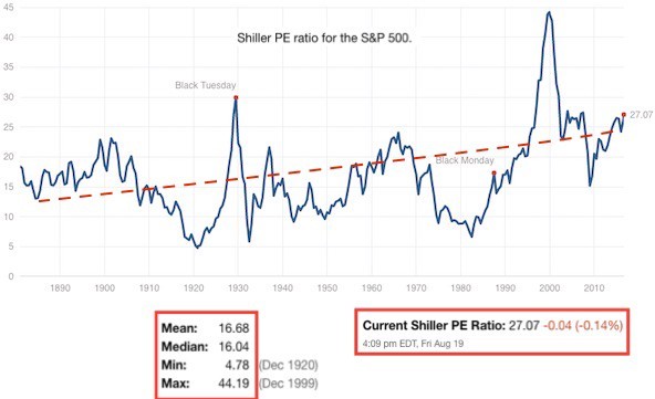 图:过去100年的市盈率在10-20之间,过去5年是15-25