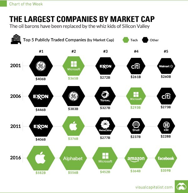 图;历年市值最高公司的变化情况(绿色是科技公司,黑色为非科技公司)