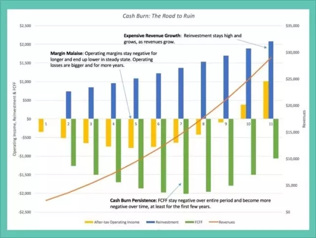 纽约大学斯特恩商学院教授阿斯沃思·达莫达兰(Aswath Damodaran)对创业公司的烧钱问题进行了研究和分析,并撰文论述了烧钱的原因、影响以及判断其是良性还是恶性的一系列方法。