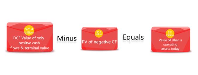 例如,在我对于Uber的估值中,前7年的期望现金流现值都是负的,为44亿美元。而后来的正现金流足矣弥补这一额度,并且还多出很多。因此我把Uber的价值减少了大概20%,这种减少可以理解为一种对公司未来股权稀释所进行的预先折价。