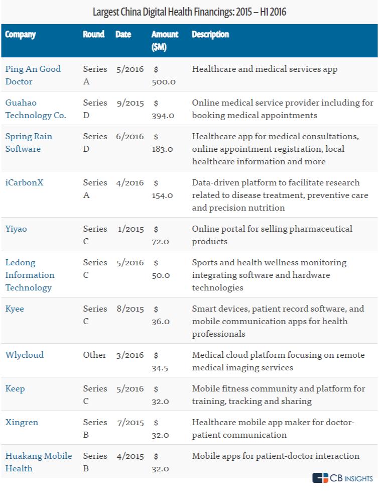 CBInsight认为,从移动健身平台到医患交流应用,再到药品销售门户网站,上半年该领域的投资可说是迎来的繁荣期。