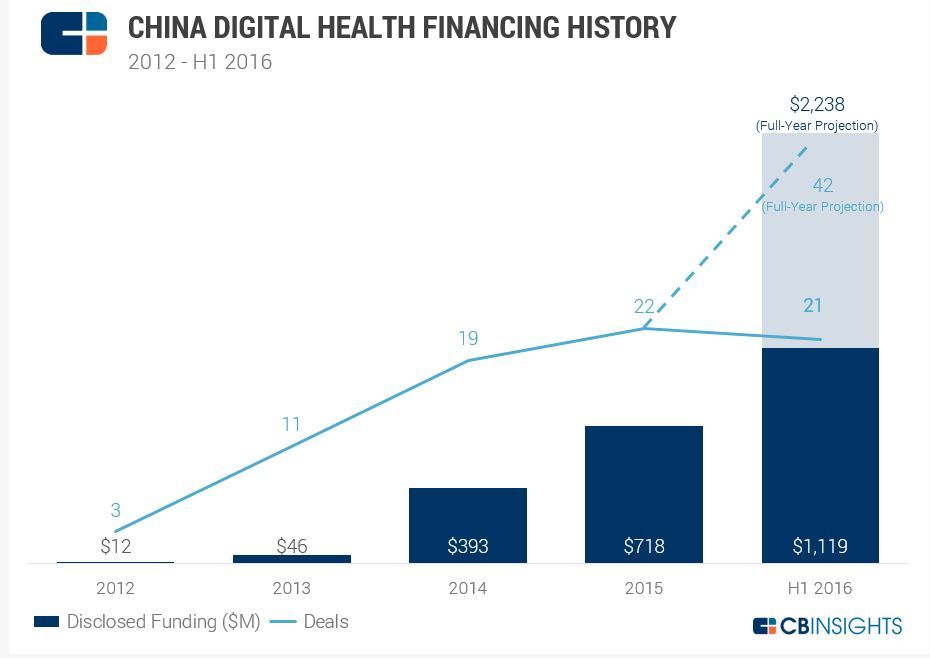 逆流而上的中国数字医疗领域:上半年获11亿美元投资,远超2015年全年