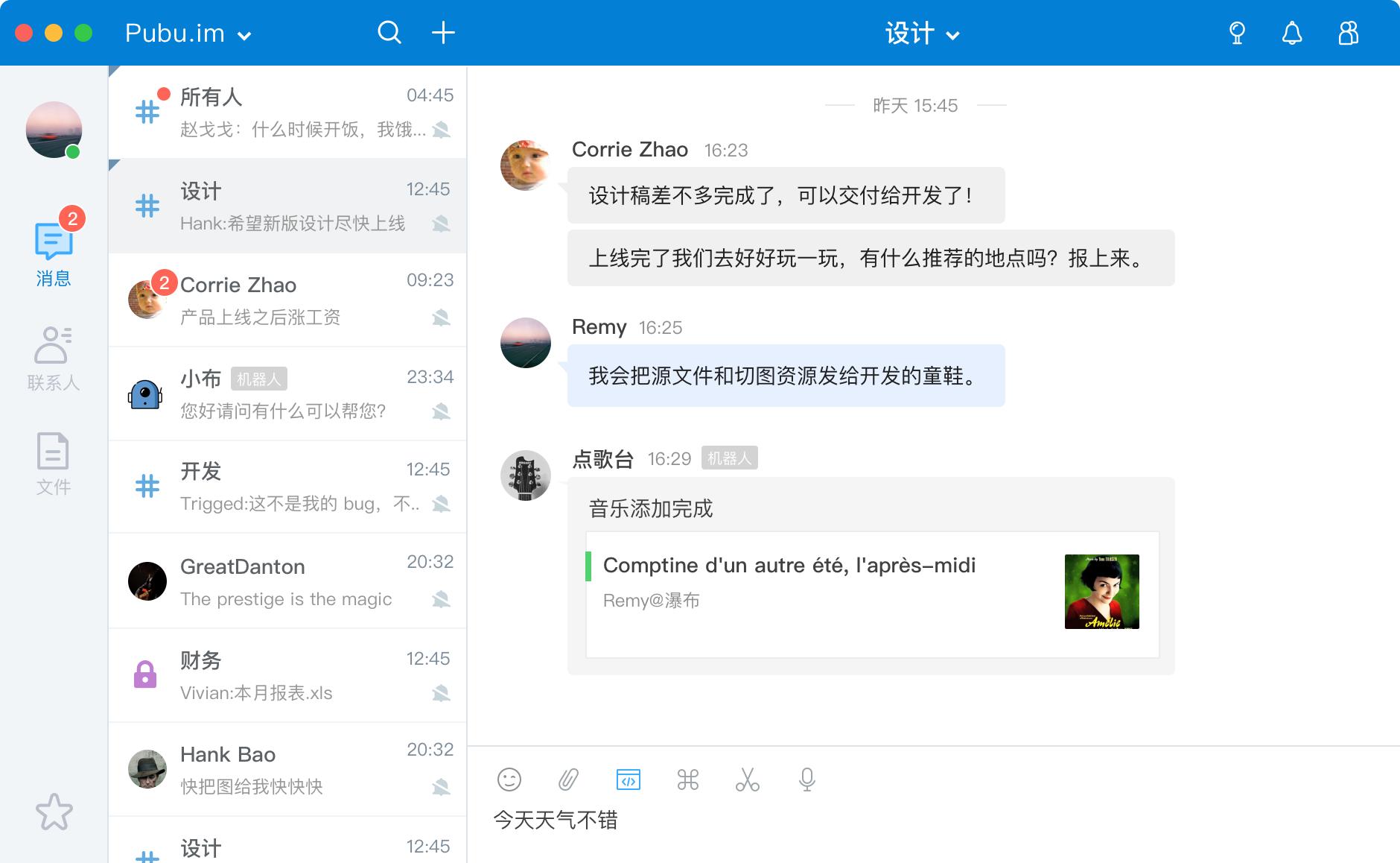 此外,还有一种模式是“IM+协作”,在此种模式中,IM则放在首要位置。在零信(原名:瀑布IM)CEO赵戈戈看来,零信便是属于“IM+协作”模式。作为一款企业沟通软件,零信最主要的特点便是把即时通讯和工作信息流整合在了一起。