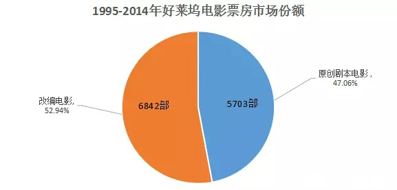 说到好莱坞的改编剧本,人家已经庞大又细分到足以将改编来源细分为文学、漫画、戏剧、游戏、新闻稿、纪录片……过去二十几年里,好莱坞公映的所有电影中,改编剧本电影不仅数量节节攀升,而且市场份额也已经超过了原创剧本电影。据TheNumbers网站的统计数据,1995-2014年间,好莱坞共公映了12545部电影,其中原创剧本电影6842部,占据47.06%的票房市场份额,改编电影共5703部,占据票房市场份额52.94%。