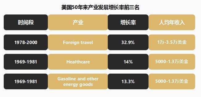 在解答这个问题前,我们需要明白用户收入对旅游有非常大的影响,我们可以拿美国来做一个参照:美国在1979年-2000年旅游业是整个美国增长速度最高的一个行业,达到了32.9%,这也是美国近50年增长速度最快的行业,第二名是70年代的医疗行业也才达到14%。所以你可以看到,这20年时间美国旅游业呈现极为恐怖的增长速度,那段时间也恰好是美国人均收入增长最快的时候,从1万美金到3.5万美金。