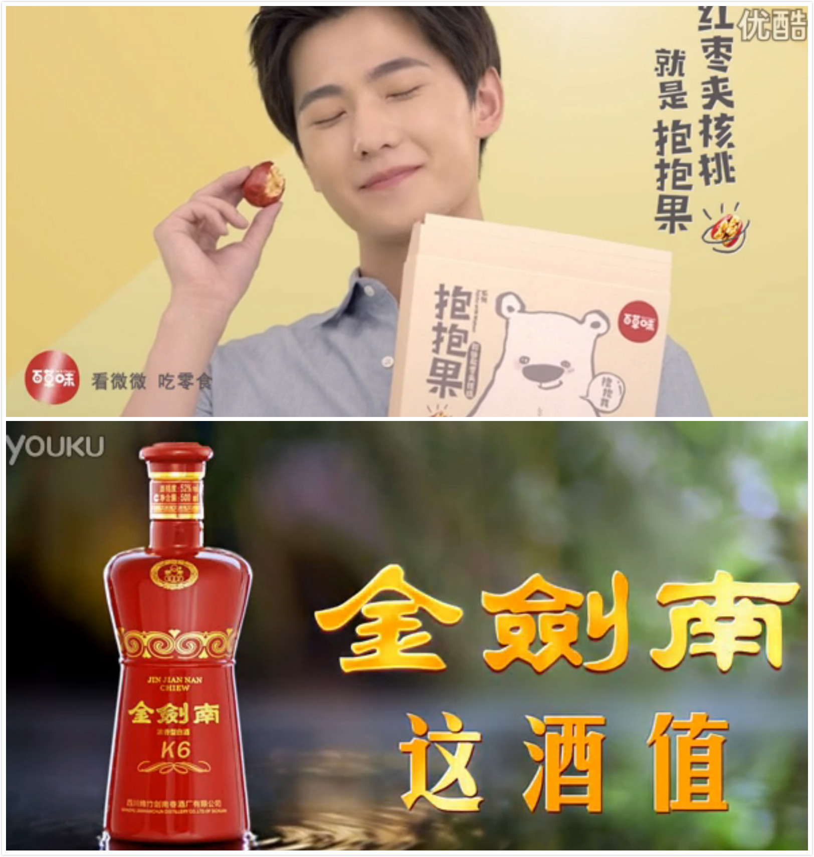 饮品:Rio鸡尾酒(杨洋)、真果粒(李易峰)、金典牛奶、合生元婴幼儿配方奶粉、味全果汁、剑南春酒
