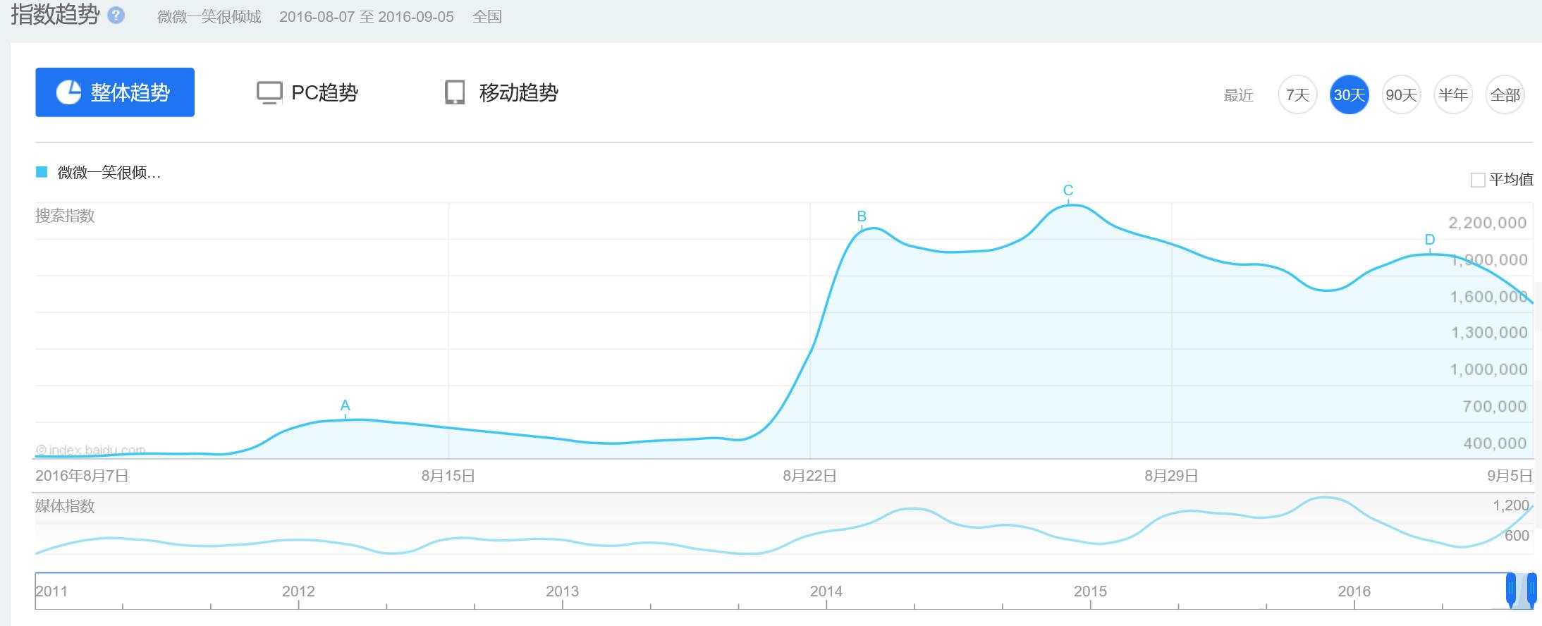 从百度指数趋势来看,《微微》自上线以来热度就迅速飙升(最高点达到219.6万),目前仍然保持稳定。