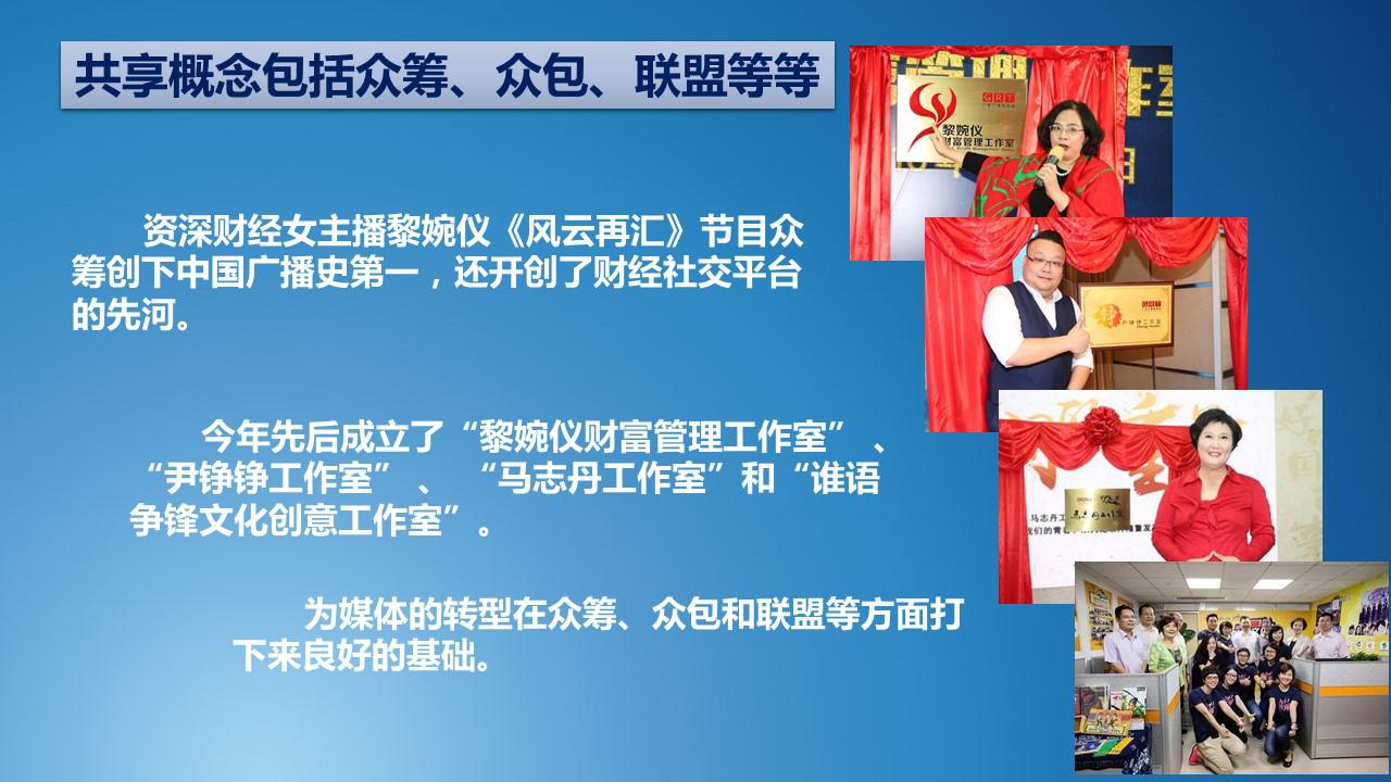 媒体单靠广告经营模式打天下的历史已基本结束,更多地是考虑多元化、产业化、规模化、精准化运营思路。紧抓共享经济,“我的就是你的!”你可以没有所有权但可以共享,在共享经济的推动下实现共赢。紧抓粉丝经济,增强粉丝们的社群意识、黏合性和忠诚感,构成独有的粉丝经济圈。