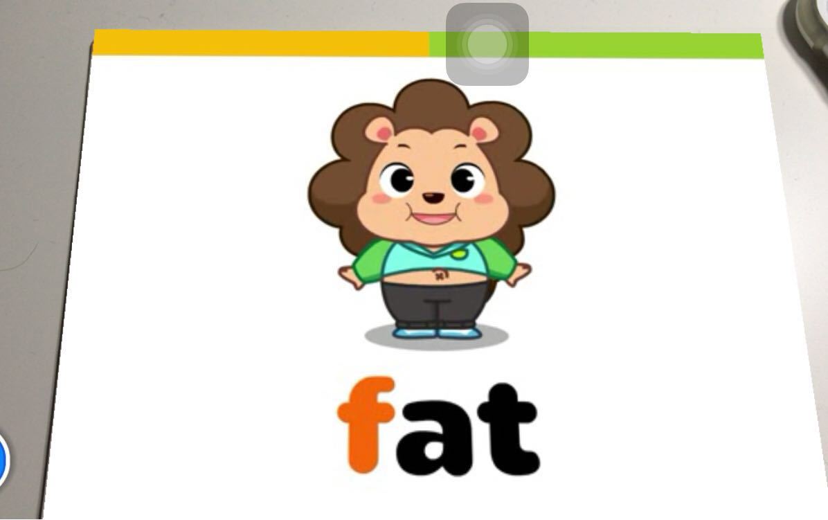 陈闻介绍,宝贝英语说在 App 内的学习之占了 30%-40% 左右,其余学习场景(也是公司最主要的盈利模式)还是在实际生活中。因为自然拼读法的内容太多,当很多辅音和元音碰撞时,只有让孩子亲自拼出来才有学习的价值。所以宝贝英语说自主研发了 4 套 AR 卡片,包括单词卡、拼读卡、高频字和分级阅读四个部分(结合 App 中的不同单元使用)。