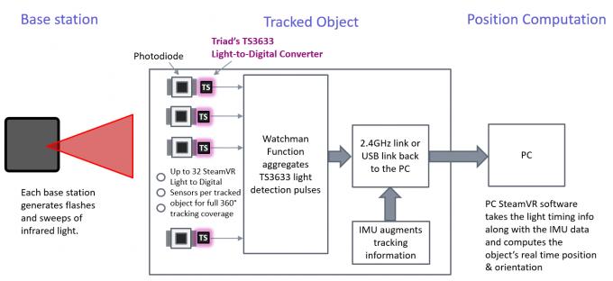 随着Valve把自家的Lighthouse跟踪技术有限开放给第三方,Triad Semiconductor跟进得很快,可供用来制造支持SteamVR Tracking技术的新VR头盔和周边设备的芯片很快就要开卖了。