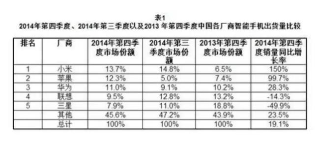 2013年至2014年,小米出货量在中国智能手机厂商首位。