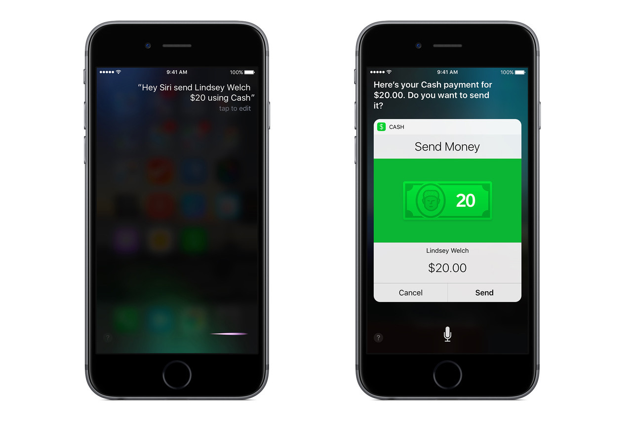 今年的WWDC2016苹果开发者大会上,苹果在发布新一代操作系统iOS 10时,宣布正式向第三方应用开放Siri。据说,Siri目前向第三方开放的应用大概有六类:音频/视频通话、消息、收付款、搜索图片、开始锻炼和叫车。比如,你可以让Siri用微信发了一条消息,用Square Cash付一笔钱,或者用Lyft叫辆车。