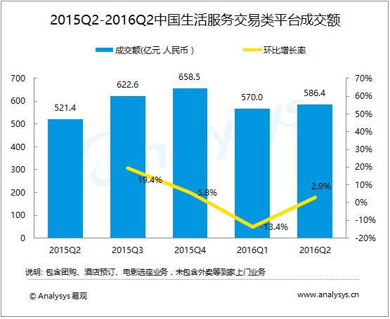 根据易观智库Q2数据报告,外卖市场整体交易额超过250亿元,饿了么、美团外卖、百度外卖三家平台在外卖市场上占比超过90%,其中饿了么35.5%,美团外卖34.2%,百度外卖21.1%。2016年2季度中国生活服务类平台交易份额中,新美大占75.4%,百度糯米占23.8%。