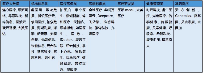 对这些公司的梳理首先遵循了我们最初设置的定义,即广义人工智能。从数据监测、采集、分析、应用、辅助诊断到电脑医生,各个类型的公司都在其中。