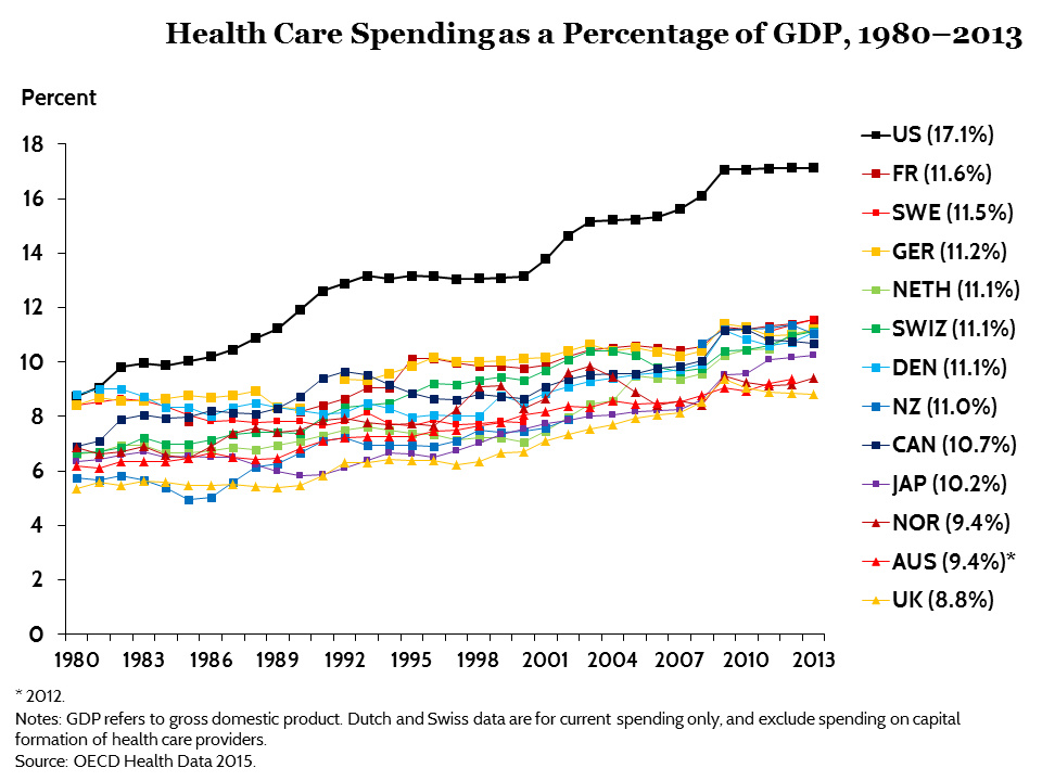 解决医疗资源不足,恐怕是对人工智能的最根本需求和发展动力所在。而医疗领域面对的另外一个问题就是费用支出持续增加,财政支出和社会负担的压力越来越大。医疗负担上升是多种因素共同促成的结果,包括人口老龄化、慢性疾病增长、新技术的采用等。