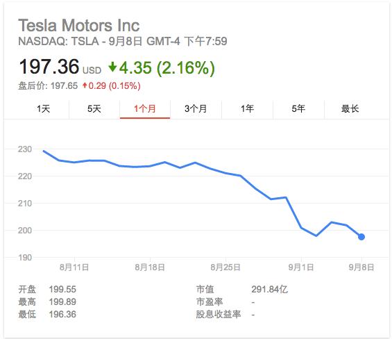 8月25日,特斯拉收购SolarCity正式获批, 盘后股价下跌1.66美元,报220.96美元;