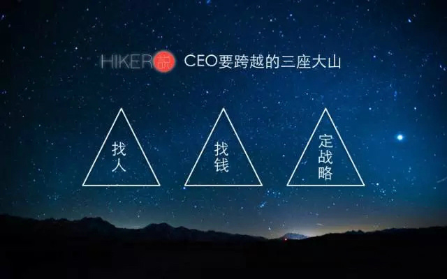 很多创始人其实不是在找人、找钱、定战略,而是在做事,反正零到一的阶段我先把这事儿给干了。但是随着公司越来越好的发展,我相信每个创始人在看这三个事情的时候感触会越来越深刻。每次回过头来看这三座大山的时候,都觉得我需要在某一方面加强。