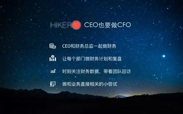 很多CEO他会犯一个错误,就说财务总监帮我做一个数,就说今年我们大概花多少钱,市场回多少,简单画一下,融资的时候给投资人看一下。看完以后CEO把表一扔,说我要使劲冲,我要招最牛的人,资金就使劲花,那张财务表再也不看了。