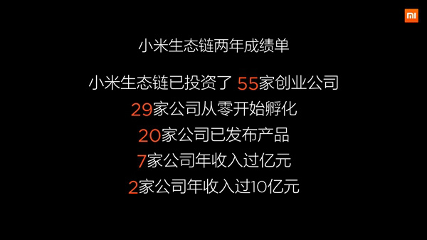 根据雷军的计划,5年内,小米会投资100家生态链企业,复制小米模式。由小米输出做产品的价值观、方法论和已有的资源,包括电商平台、营销团队、品牌等围绕自已建立一支航母舰队。这样就可以让专业的团队更高效、专注的做出更多高品质的硬件产品,跟智能手机紧密有效的整合在一起,进而增加小米的安全感。对于这一点,刘德打了个比方:传统公司像松树,30年才长起来;互联网公司更像竹子,一夜春雨就能长起来,3年就能到中等以上规模。但问题是,竹子并不是安全的植物,单棵竹子可能会在新陈代谢中死掉,但如果成为竹林,根部相连,蔓延生长,那就砍都砍不绝了。小米生态链的投资,就像是在寻找竹笋。这种公司更活性,自身就能完成新陈代谢,所以更安全。