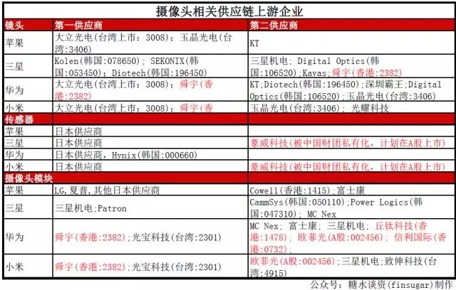 然后需要再重点涉及的是模组的生产,因为双目摄像头改变了原本单目摄像头的结构。苹果和三星合作的模组厂多是日韩企业,而且一般业务较为复杂,所以从投资的角度看并不是非常合理的标的。一般来说好的标的需要业务相对单一,这样股价/市值弹性才会大。但看到中国的公司华为和小米时,很明显模组的第一供应商是舜宇光学,那么随着国产机型双目摄像头的普及,欧菲光的业绩也就会出现相应的增长。BTW,舜宇光学本身已经在汽车摄像头领域有所布局,所以可以说舜宇的驱动是双核的。