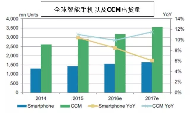 但是!现在苹果的双摄像头代表手机主机厂们开始动真格了(其实就是高像素玩不下去了,换了一种战法),IPhone 7 plus的后置双目摄像头算是打开了大家对双目的期待。最后能不能做到50%的新机销售渗透率我不敢保证,但是可以确定的是接下来2-3年会是摄像头出货量再次加速的时间窗口。