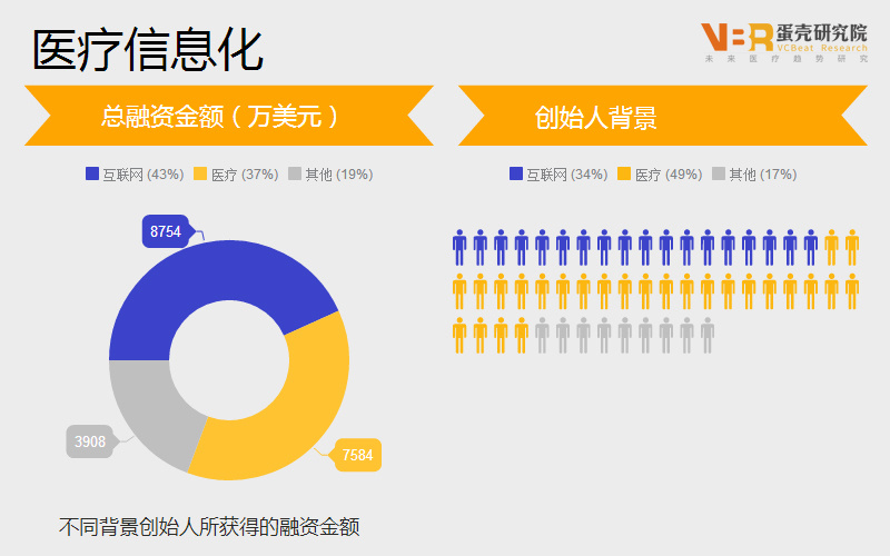 和金融、电信等其他领域的信息化建设一样,医疗信息化对计算机软硬件技术、网络通讯和移动通讯等现代化信息技术要求较高。参与医疗信息化建设的一般是IT技术公司,更需要的是强大的互联网技术能力,在理清医疗机构的业务逻辑之后,开发出各种支持和服务的信息系统。所以,参与这个行业的互联网人较多。但是医疗信息化并不仅仅是HIS系统,还有基因大数据分析、医学数据分析、医疗影像云存储和数据分析等细分领域,这个领域的创始人以医疗背景居多。