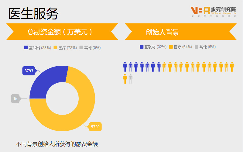 诊疗是一个相对专业化的过程,所以使用专业化的数字工具来帮助医生,提升诊疗过程的效率和准确性是非常有必要的。而且医生的一生中,需要不停的学习和晋级,交流和学习也必不可少。正因为诊疗过程非常专业,所以往往医疗背景的创始人更懂医生们需要什么,如何才能提升诊疗效率,如何才能学到更多的知识。医疗背景的创始人设计的医生工具产品更能够切中用户的痛点,所以获得的投资人的青睐也更明显,70%以上的投资都被他们拿走了。