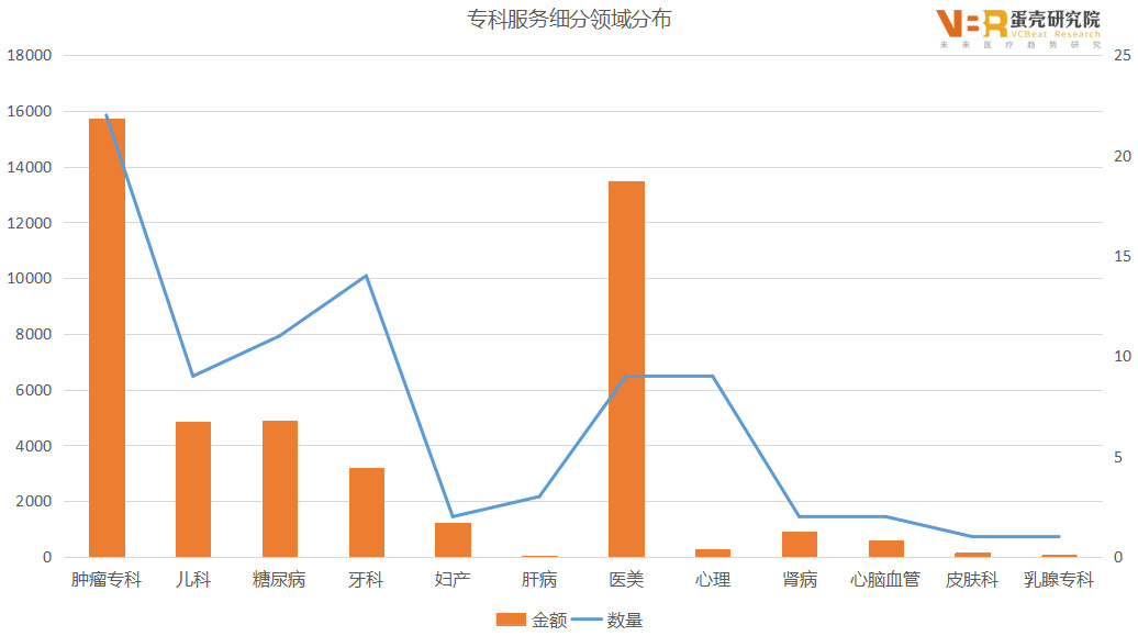 专科服务其实也是寻医诊疗大类别的一种,但是它的专业性更强,只针对一种类型的疾病做服务。所以,进入这个行业的企业,创始人需要专业的医疗专科背景。而互联网人只能切入糖尿病为主的慢病管理以及医美行业。进入肿瘤科、牙科、肝病、儿科等寻医诊疗的专科领域,毫无例外都是相应的科班出身,把互联网人排斥在外。目前,专注于肿瘤精准医疗领域的思路迪已经走到了D轮,获得2212万美金的融资。