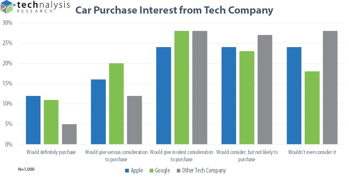TECHnalysis调查:约1/3的受访者表示会认真考虑购买一辆苹果/Google汽车