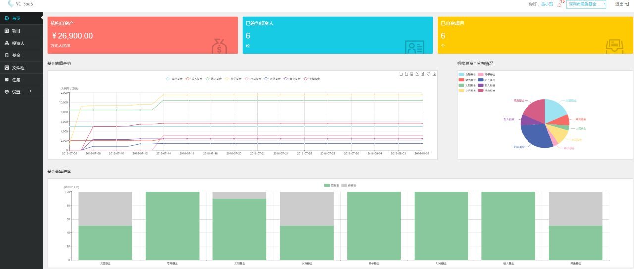 考虑到这些问题,蓝志豪才从勤智资本离职,创办了VC SaaS,想打造一个垂直于创投圈的协同办公平台。今年8月,平台1.0版本正式上线,针对投资机构的共性需求,VC SaaS目前提供了项目数据管理、工作任务协作、投后管理、LP管理等功能。