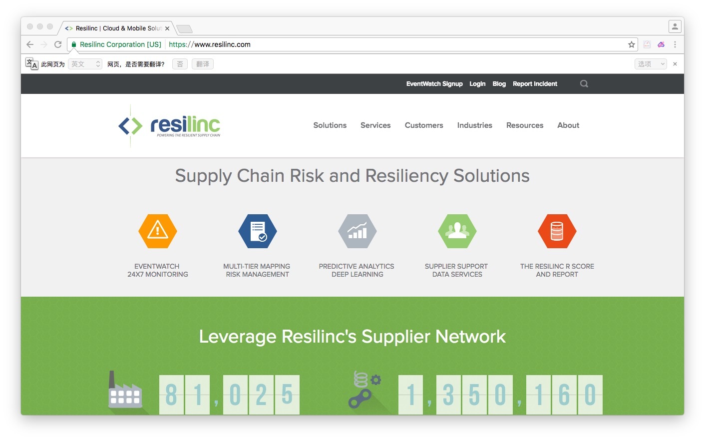 成立于2010年的Resilinc公司,是领先的提供供应链弹性和风险管理解决方案的提供商。尽管在全球供应链中断的时候,也能帮CEO和首席供应链官实现他们的收益目标。Resilinc的平台能为企业提供先进的多级映射和零件原点智慧,这是从超过35000个供应商,跨越超过65000个全球工厂收集来的。很多行业龙头公司都与Resilinc有合作,如IBM, General Motors, EMC和Amgen and Western Digital等,他们依靠Resilinc供应商库的情报,结合先进的分析技术来分析相关漏洞、评估风险以及对收益的影响,来预测供应链上可能导致严重后果的关键失败点。