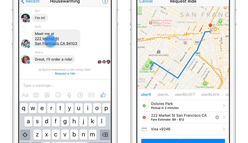 他们还开始挖掘商业选项,比如Messenger让我可以在会话之内打一辆Uber。