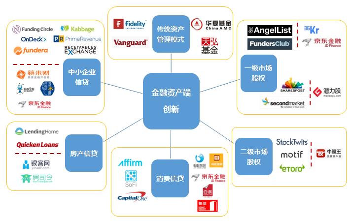 我把资产端的创新分为一级市场股权、二级市场股权、消费信贷、房产信贷、中小企业信贷和传统资管模式6大类。