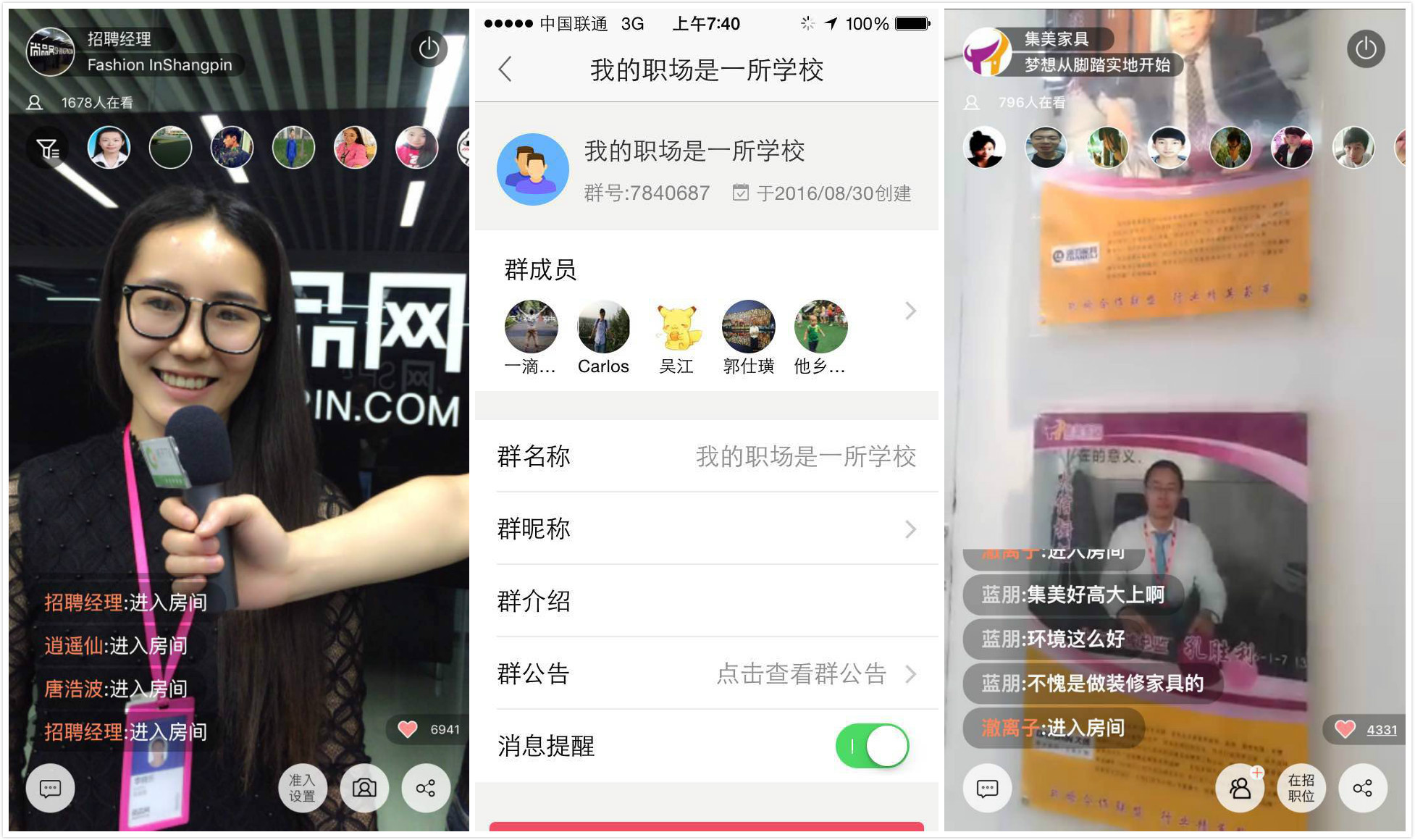 线上视频方面,求职者可以录制30s的视频简历简要介绍自己,企业也能将与公司有关的信息以视频的方式展现。这种视频简历也会配以文字简历一同投递给企业方,一旦企业方对该求职者比较满意,可以发出视频面试的邀请。另外,“椅子网”这次推出了一款新产品——椅子直播App,其主要面向中小微创企业。有点类似于将线下校招搬到了线上,企业方可以开通视频直播进行招聘,一方面企业方能依据对职位的需求制定求职者进入直播的门槛,比如说要求职者简历与企业对职位的要求有80%匹配度。在直播过程中,企业方还能设定助理,由助理再去面试求职者,助理可以是所需招聘岗位的直接领导人,这样相当于协同面试,避免了多次沟通的麻烦。当求职者进入直播间后,直播间的所有人就能自动组建为一个群,之后可以进行相关交流。