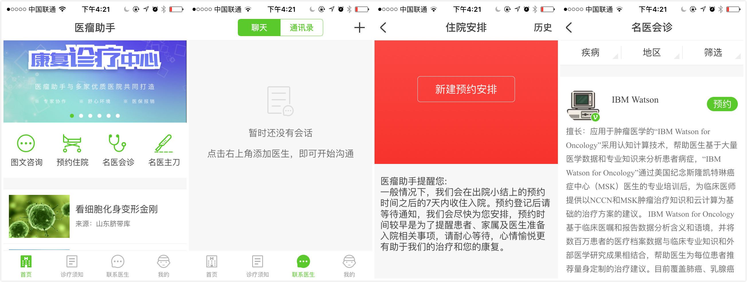 从当前的用户端APP来看,除了用户教育功能诊疗须知,医瘤助手还可以帮患者实现熟人医患沟通和床位、会诊、手术、及康复服务的预约。在现有服务中,医瘤助手在会诊、手术和康复服务上进行收费。