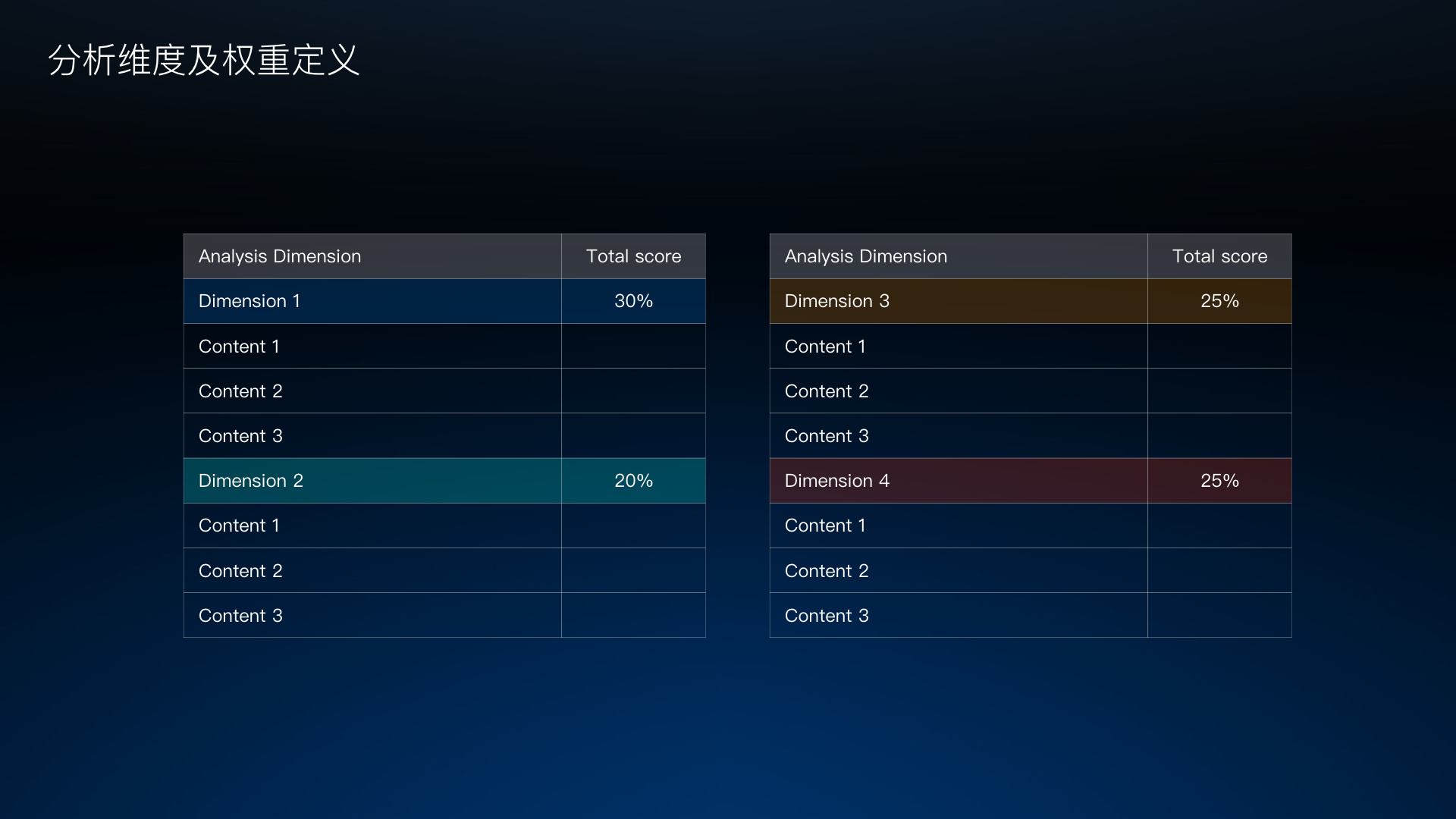 这些评判纬度其实都是灵活的,我们需要的是根据产品类型的不同设定不同的纬度。