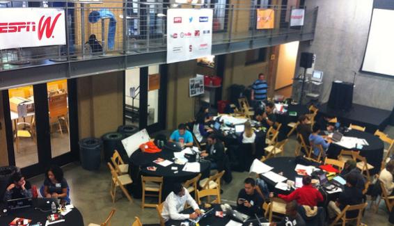 ▲ 赞助校园活动是公司扩大知名度、招揽人才的不错办法。图为企业赞助的斯坦福黑客马拉松。