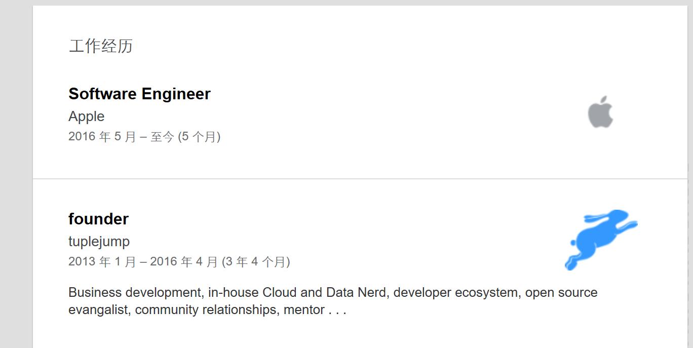 Tuplejump拥有12名员工,其中大多数已经进入苹果位于西海岸的办公地点工作。根据Tuplejump创始人Rohit Rai在LinkedIn上的个人资料显示,他在5月份就加入了苹果,目前正在西雅图。