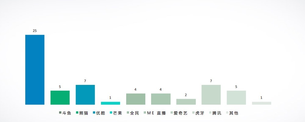 而从平台维度来看,目前对直播综艺倾斜最多的是斗鱼。保守估计,斗鱼上的直播综艺节目已超过25档,其次是优酷,熊猫位列第三。