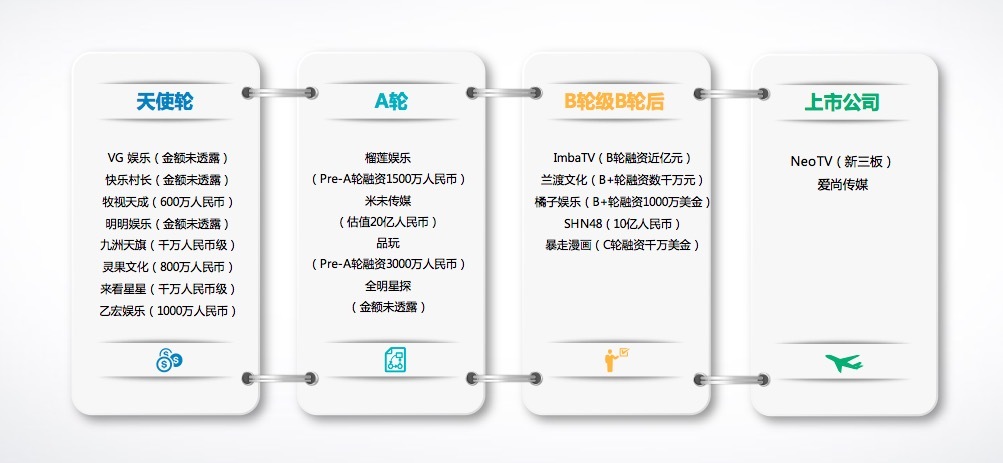 我们梳理了涉及直播综艺的内容公司,发现轮次处于天使和A轮的居多,说明这个内容赛道还处于早期阶段。