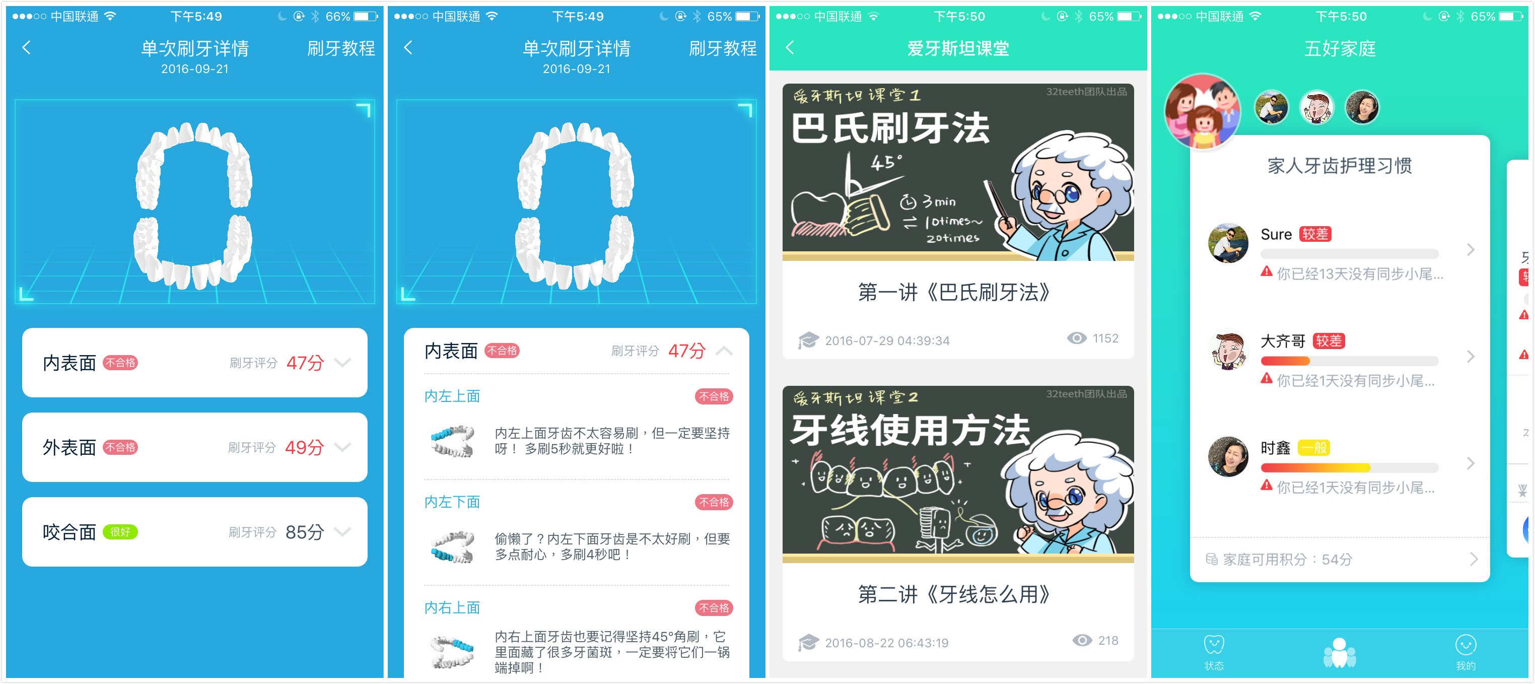 此外,该款产品可实时更新家人的牙齿护理习惯,出现异常时会给予警示。而且每个家庭都有一个集体账户,全家人获得的刷牙积分可以解锁口腔健康顾问(类似于家庭口腔医生)。