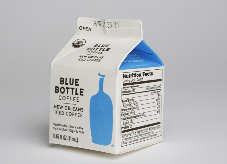 Blue Bottle Coffee 创立于 2002 年,总部位于加利福尼亚州,是美国的精品咖啡品牌。Blue Bottle Coffee 选用品质上乘的有机认证咖啡豆,采用传统种植方式,无农药残留。店里意式、手冲、虹吸、冰滴的设备一应俱全,并且只选用 48 小时以内烘焙的新鲜咖啡豆,不做快餐式产品,走品质精品路线。除了门店内现场制作的咖啡之外,Blue Bottle Coffee 还提供牛奶盒式样包装的新奥尔良风味冰咖啡、冷泡咖啡以及咖啡豆的销售服务。