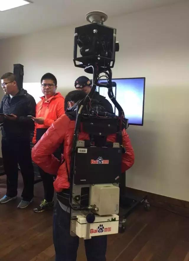 除了自行车和采集车辆,百度地图的外业数据采集还有全景采集背包和室内图采集背包。其中全景采集背包是专用于步采,可以采集步行街、景区、沙滩等全景图像,全景背包由头顶的三台单反、背后的一台笔记本电脑、以及数据处理存储的盒子组成,共有30多斤,造价在30万左右。