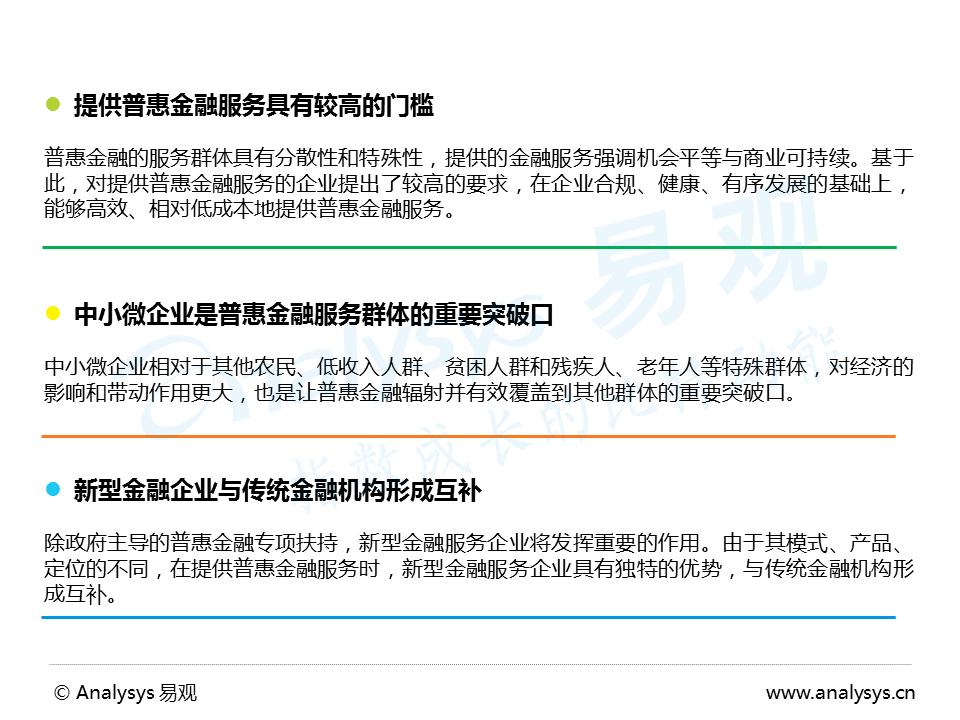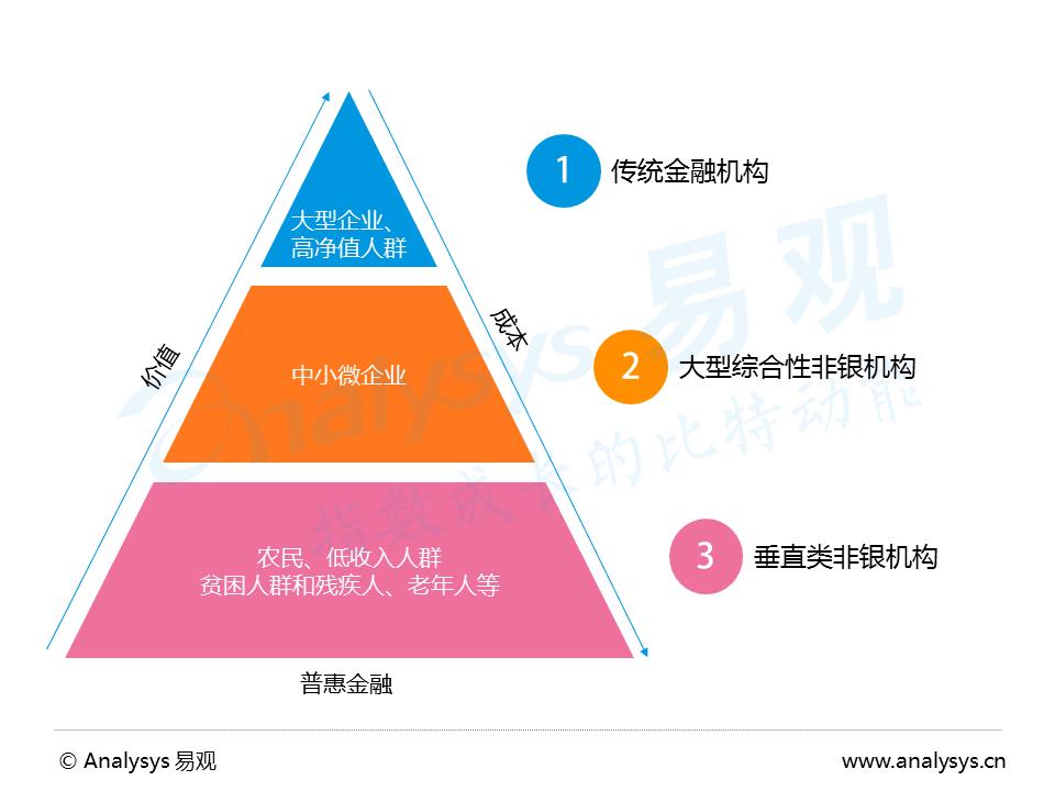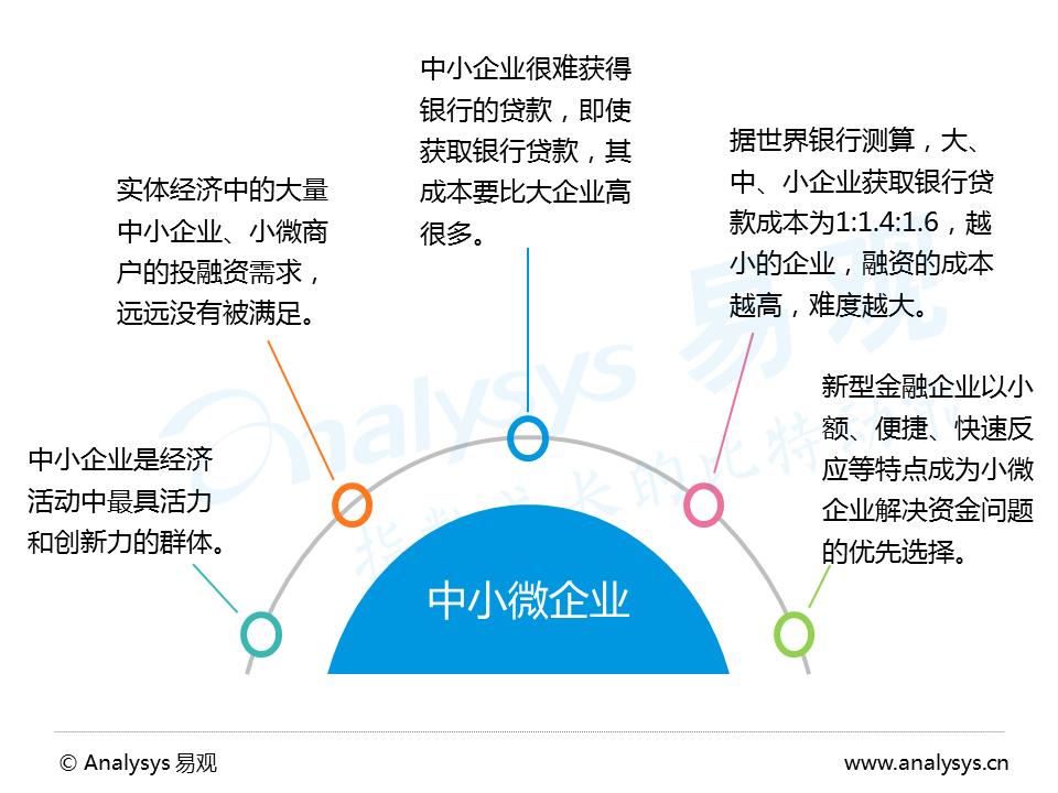 Analysys易观认为,普惠金融的服务群体中,中小微企业是重中之重,是推动整个普惠金融发展的重点领域。